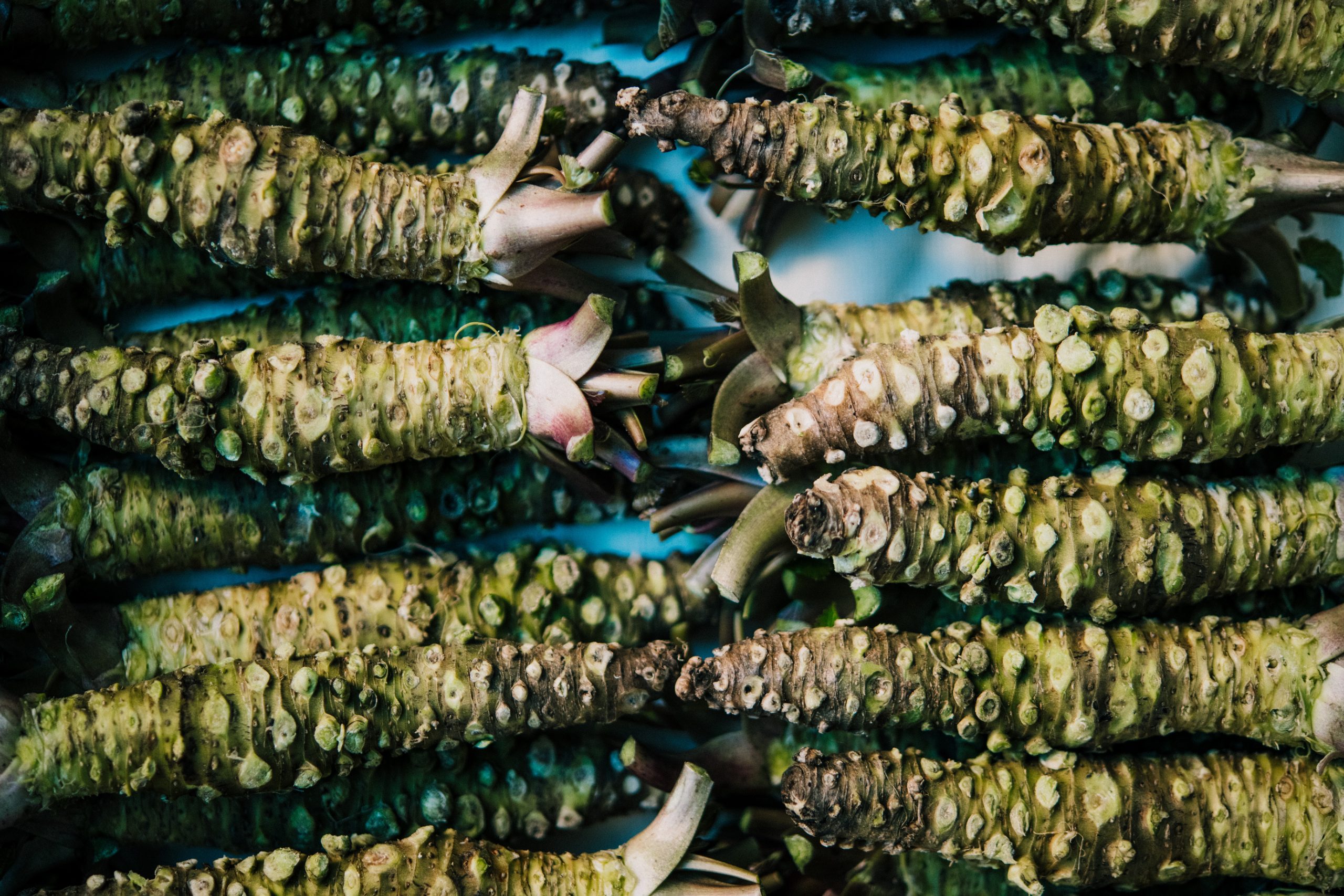 葉の側から鮫皮などの細かいおろしで擦ってください。